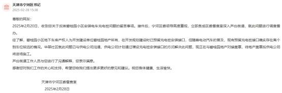 “我们小区自第一批业主2022年4月交房至今,配套设施仍存在诸多不完善之处,给日常生活带来诸多不便。就车位问题而言,购房时我们被要求购买地下车位。如今我想在车位安装电动汽车充电桩,却因车位与电表房距离远,需自行承担线缆铺设费用。”居住在宁河区芦台街道网友留言表示,“希望能尽快解决此问题,完善小区配套设施,让我们能够安居乐业。”
